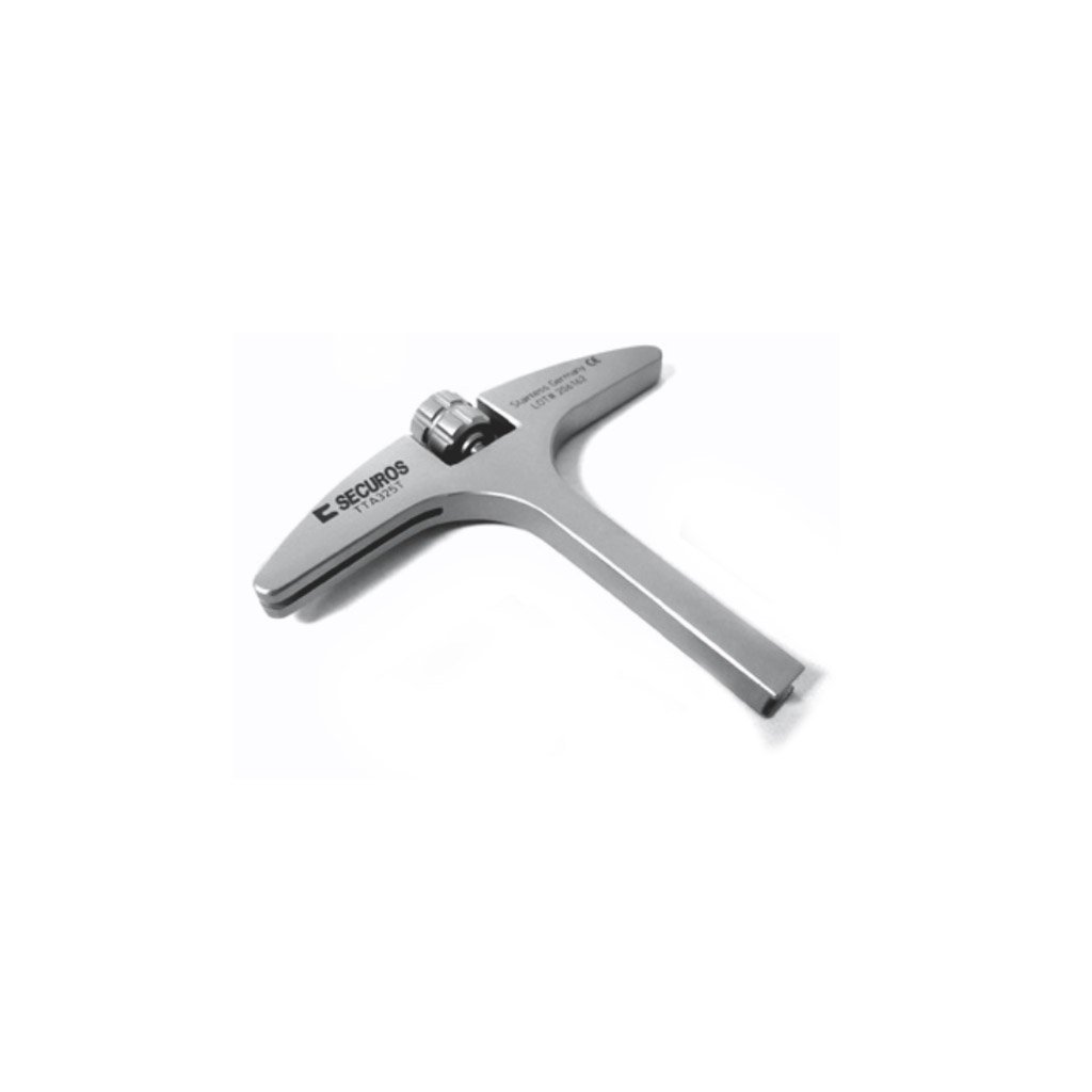 Držák pro TTA spacer (rozpěrku). Slouží k uchycení rozpěrek (TTA spacer) a jejich dočasnému vložení do prostoru, kam se posléze vkládá klec na TTA. Nerezová ocel.